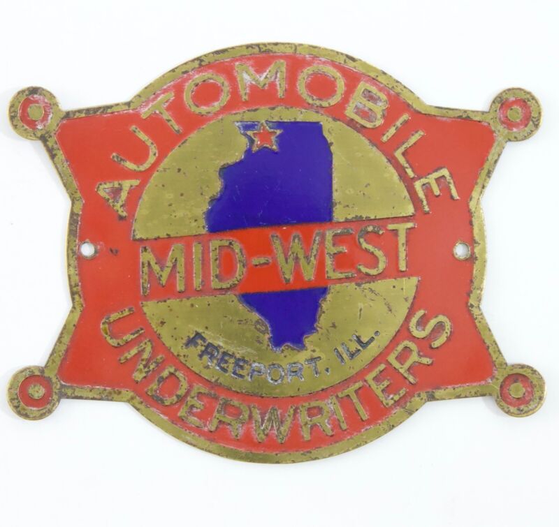 Automobile Underwriters Mid-West Freeport ILL 3��� Metal Badge 1940s-50s Era