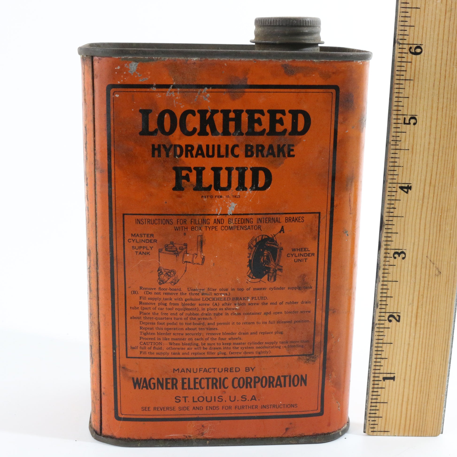 Lockheed Hydraulic Brake Fluid Wagner Electric Vintage Metal Can Container