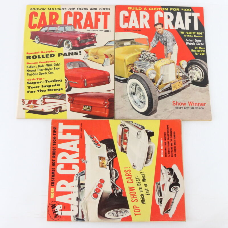 Lot Of 3 Car Craft July August September 1959 Vintage Car Magazines