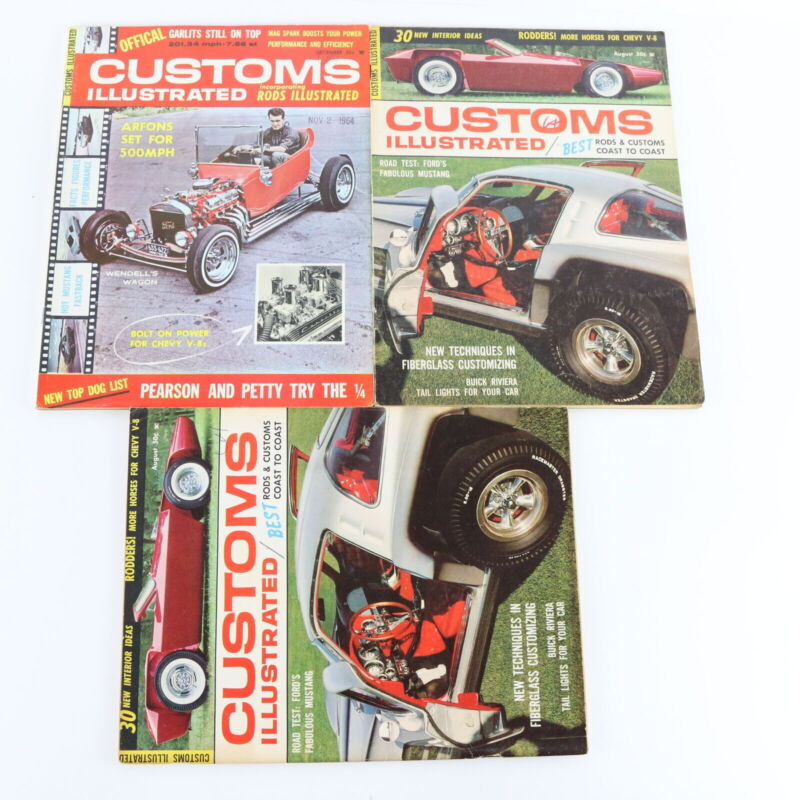Lot Of 3 Customs Illustrated August & December 1964 Vintage Car Magazines