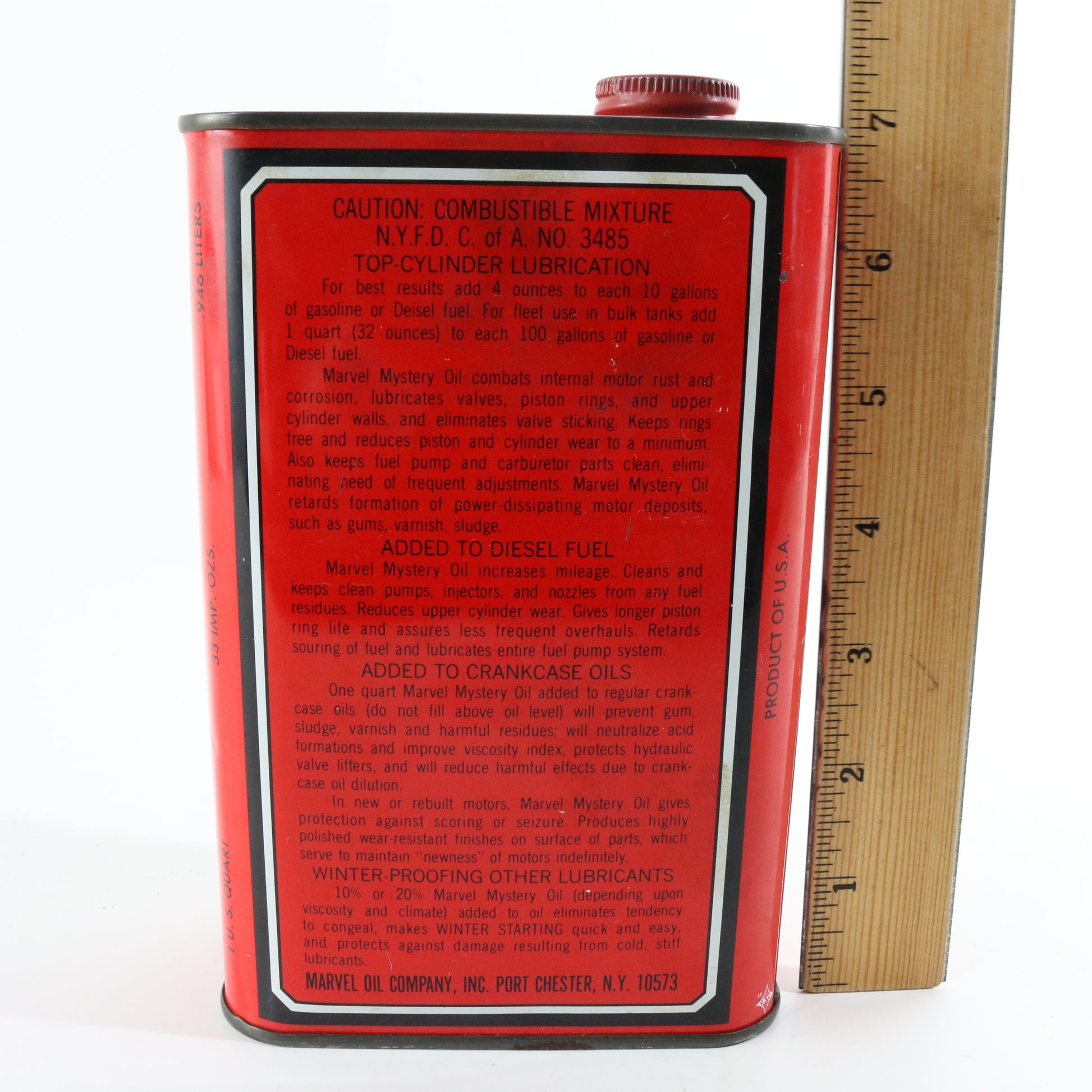 Marvel Mystery Oil Top Cyclinder Lubrication 32 oz Metal Can Container
