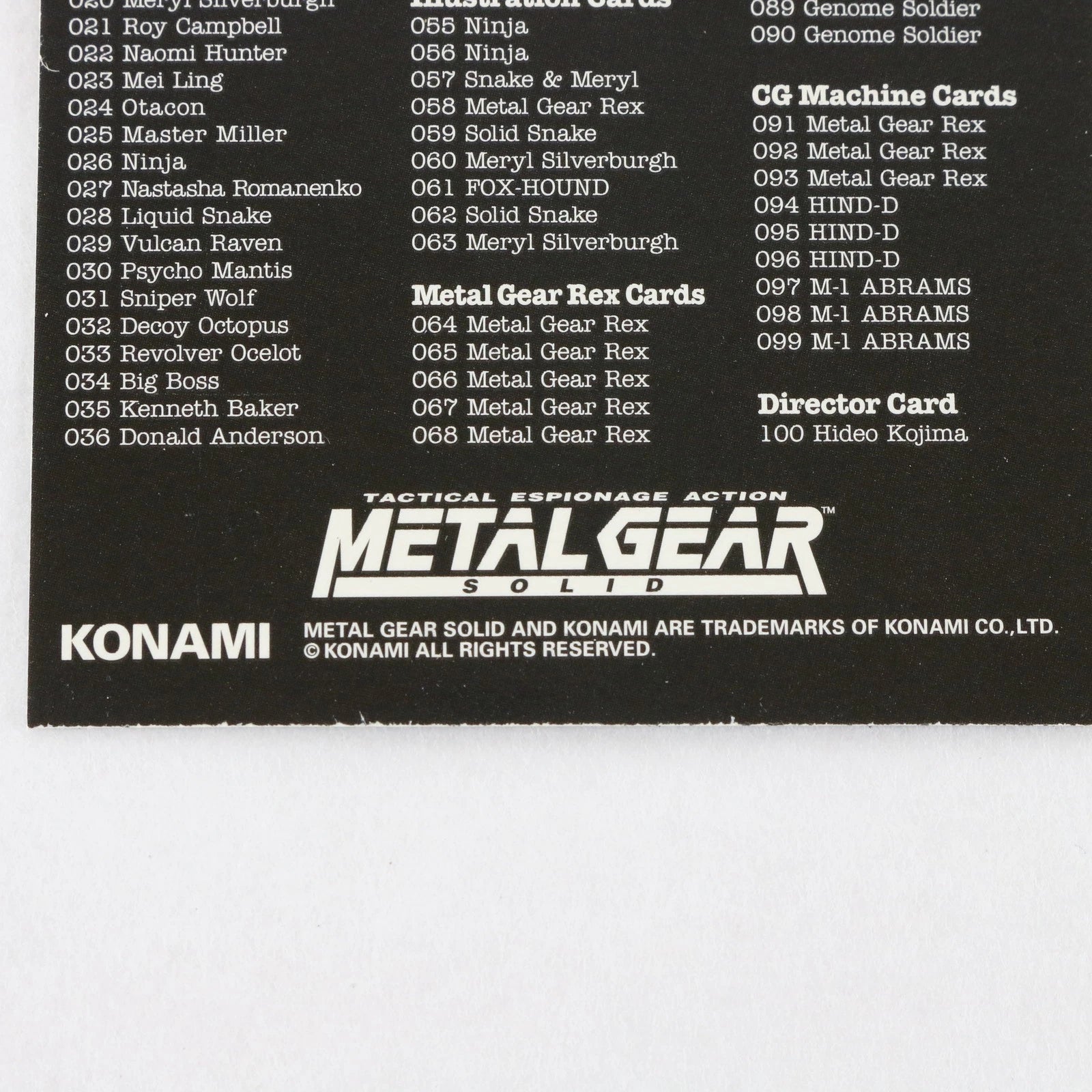 Metal Gear Solid Trading Card Psycho Mantis Checklist Konami Playstation